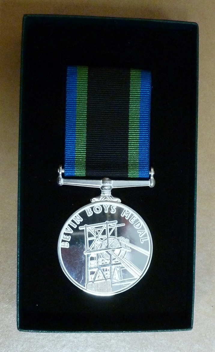 This commemorative medal was issued to Bevin Boys for service underground during 1942-1948. Bevin Boys played a vital role during the Second World War working in the coal mines, and you can read more about their role in this article. The medal was produced by Bigbury Mint in 2015 in hallmarked silver, and is on a striped blue, green and black ribbon. It was purchased by the Museum this month, and has been added to a small but varied collection relating to the work on the Bevin Boys in the Second World War.