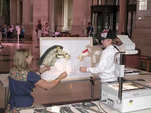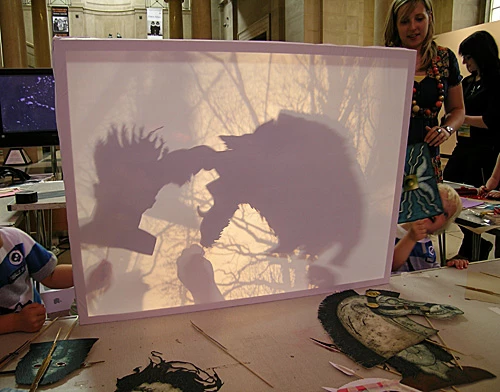 Last Saturday, Sean Harris ran a Shadow Puppet workshop at National Museum Cardiff converting the main hall into an animation studio.