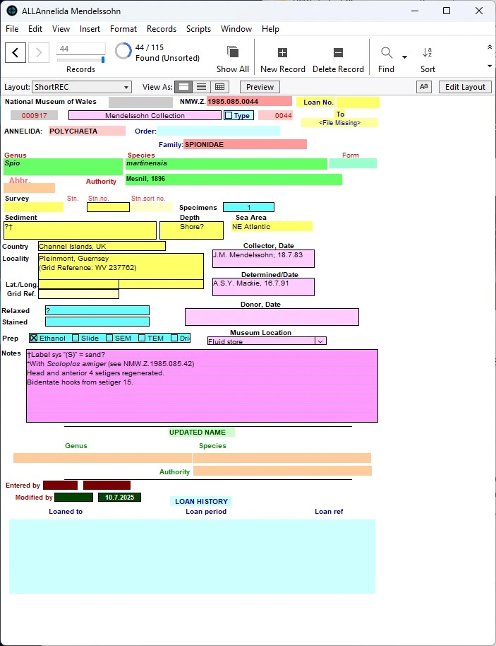 Fel i Mayu grybwyll, roedd y dasg o guradu'r casgliad hwn yn cynnwys chwilio'n drylwyr trwy draethawd ymchwil PhD Mendelssohn o 1976 er mwyn darganfod union leoliadau casglu'r sbesimenau hyn. Trwy ddefnyddio'r traethawd ymchwil a chymorth Google Maps dibynadwy, roedd modd i mi bennu cyfesurynnau hydred a lledred ar gyfer pob sbesimen a'u cofnodi yn y gronfa ddata. Cafodd pob manylyn ei nodi ar y gronfa ddata gan gynnwys yr holl wybodaeth dacsonomaidd a hyd yn oed manylion gwaddodion. Ar ôl cwblhau hyn ar gyfer pob sampl, aethom ati i baratoi labeli ffres ar gyfer y samplau hylif corfforol. Roedd hyn yn cynnwys agor y samplau a rhoi label newydd yn y jar. Dull hawdd a chyflym o adnabod y sbesimen.