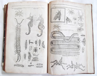 Theatre of Insects was published posthumously. In 1590 he had completed a compendious work on the natural history of insects, partly compiled from the unpublished writings of Edward Wotton, Conrad Gesner and Moffet’s friend [and fellow physician] Thomas Penny. After Moffet’s death, this still unpublished manuscript (BL, Sloane MS 4014) came into the hands of his apothecary [Darnell], who sold it to Sir Theodore Mayerne, who published it in 1634 as Insectorum, sive, Minimorum animalium theatrum. It was translated into English by J. Rowland as The Theatre of Insects, or Lesser Living Creatures and appended to Edward Topsell’s History of Four-Footed Beasts and Serpents (1658).