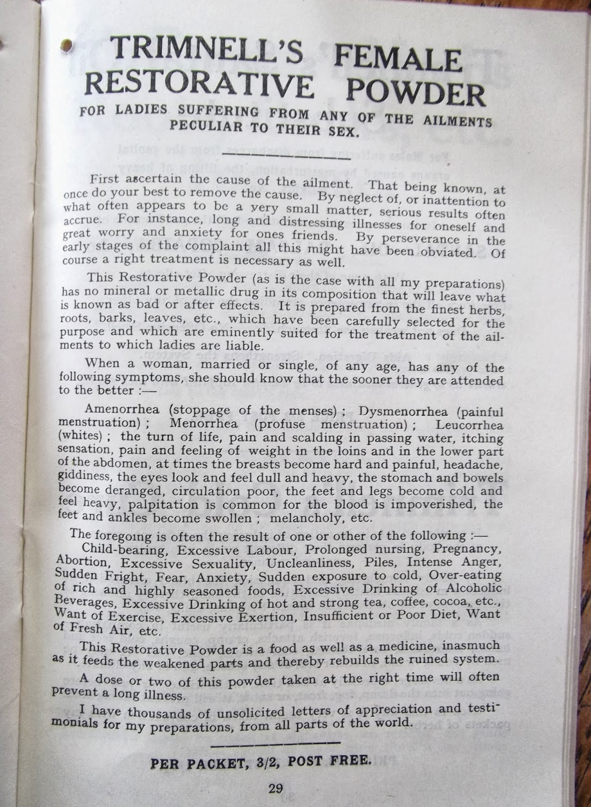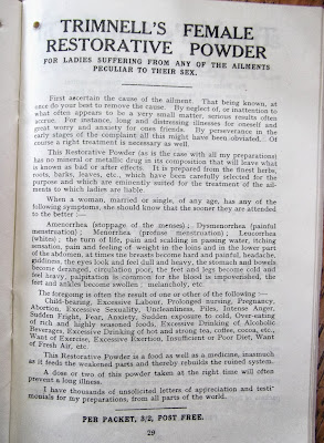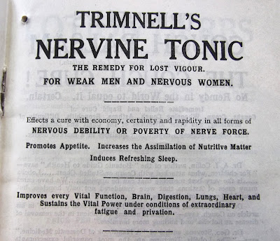 I have done a little research but, apart from a few scanned newspaper advertisements, have found no other information on Trimnell except for one of his old medicine bottles that sold recently on Ebay for £1.99 [see photograph below].