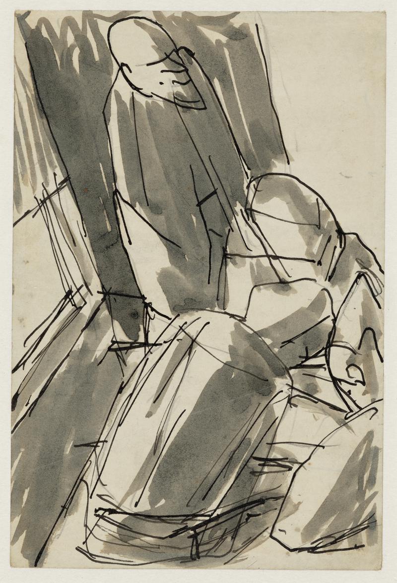 Players resting, Ghetto Theatre ink wash series 1919