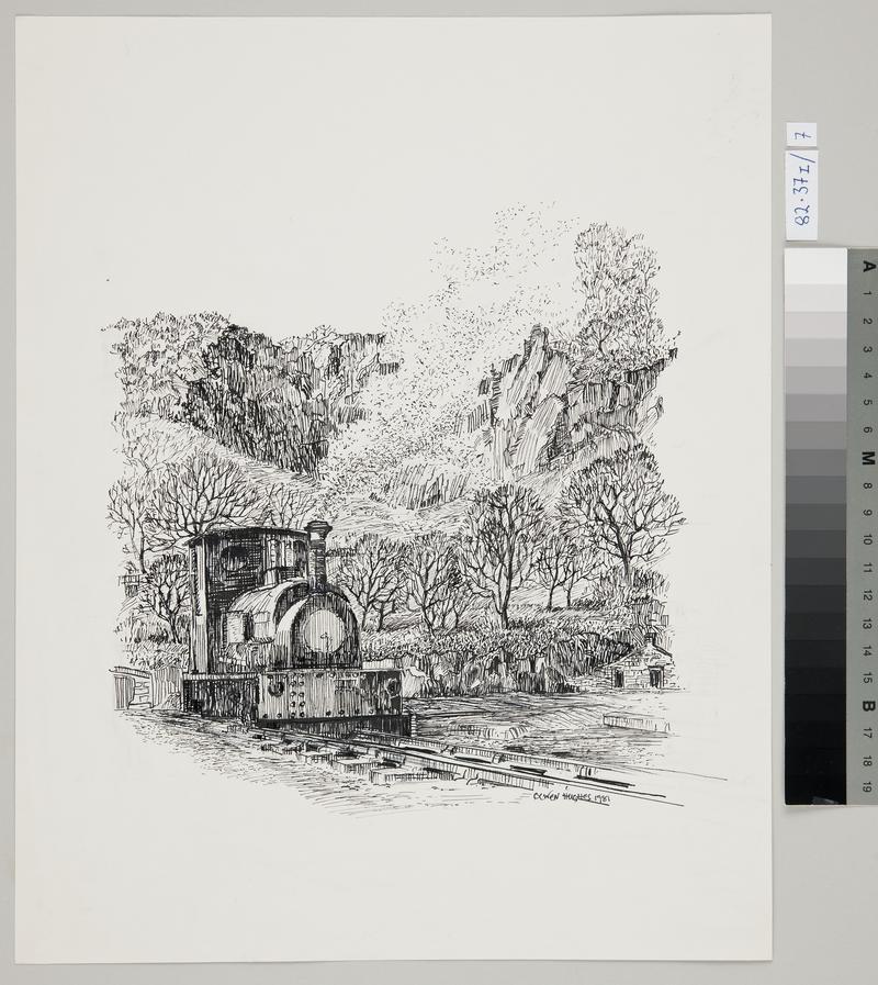 Narrow Gauge Locomotive Outside Gilfach Ddu (draw