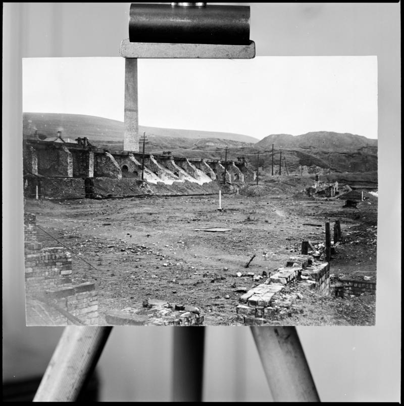 Film negative of a photograph showing a landslip near New Tredegar, April 1930. 'Tredegar landslip' is transcribed from original negative bag.