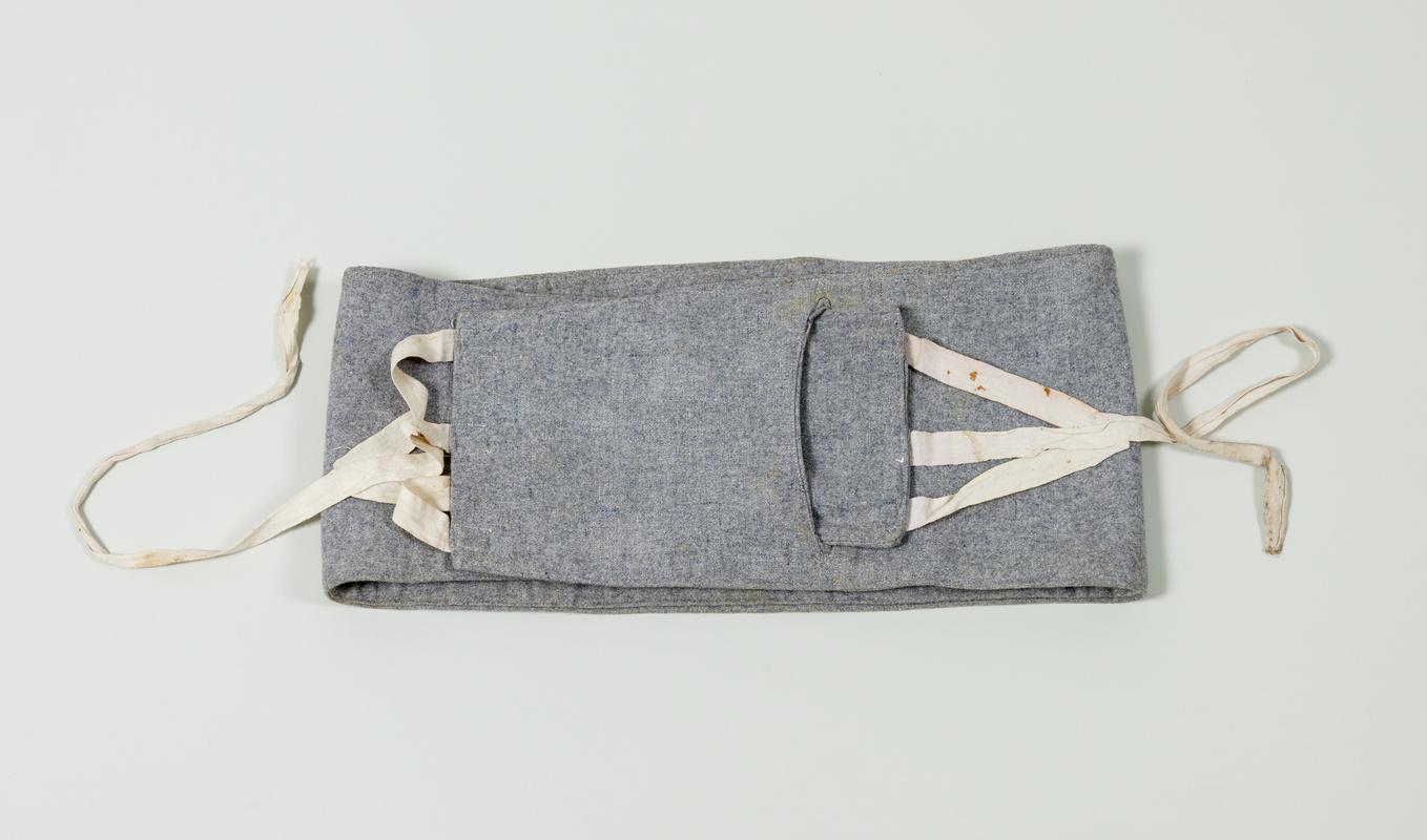Chest protector worn by J.G. Mortimer, Cardiff, 1890-1910. Rectangular piece of quilted cotton sateen. Padded with cotton wadding. Black on one side, white on the other. Machine stitched trellis pattern quilting.