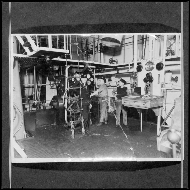 The hold of the S.S. OCEAN VANGUARD. 'Bartletts pears' written on the boxes in the hold.