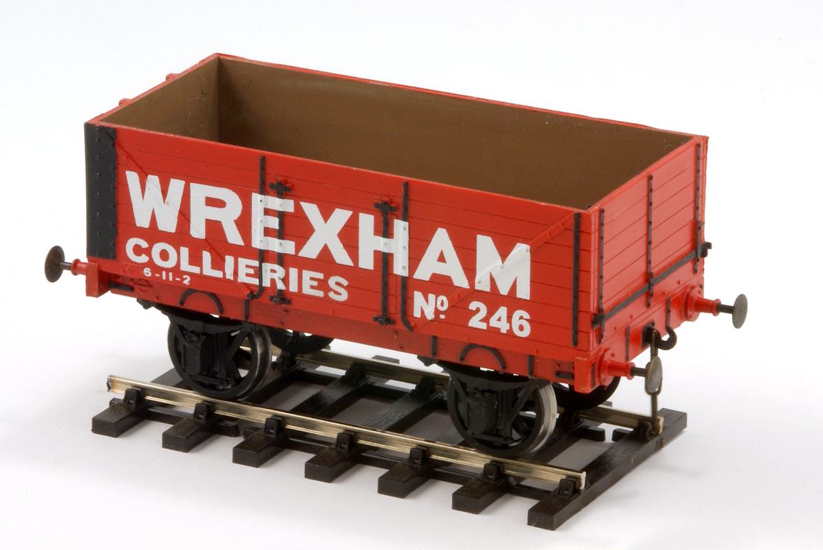 7mm scale model of Pwllheli Granite Co. Ltd. coal wagon No. 60. Painted grey with white lettering.