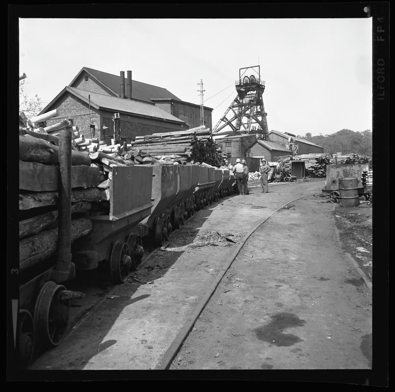 Black and white 35mm film negative showing Lady Windsor Colliery, 1970s.