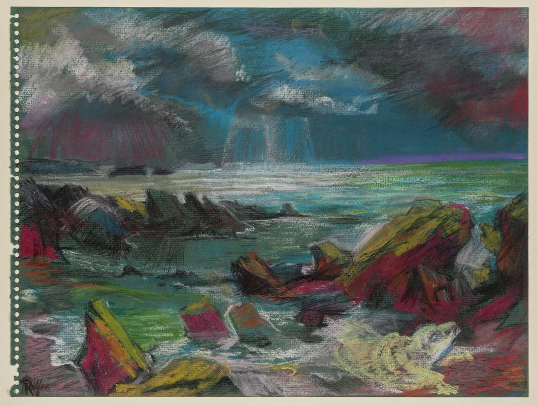 Sketchbook: Martin's Haven, damage to studio roof, Renney Slip, Skokholm from coast path; Gateholm; St Brides & All Saints; Monk Haven, Nashdom Abbey grounds; Portugal