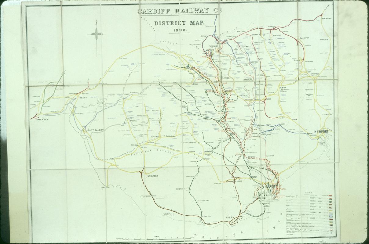 Dark maroon leather bound pull-out map with title inscribed in gold lettering. Paper on linen showing coloured drawn map. Scale - 3/4 inch to 1 mile.