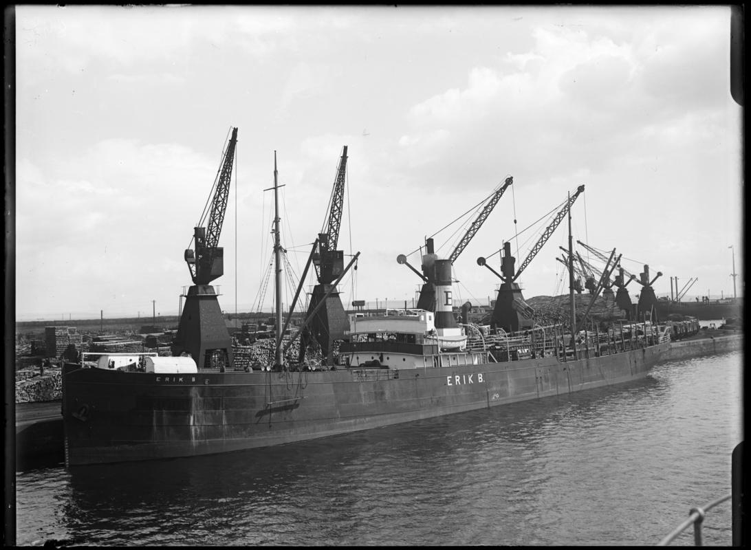 Starboard broadside view of S.S. I A at Cardiff Docks, c.1936.