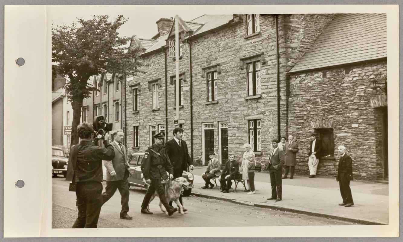 Black and white photograph of National Patriotic Front (Wales) rally at Machynlleth, 1968