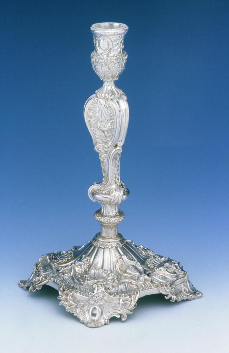 Spoon, silver, Old English pattern with shoulders, deep slightly pointed egg-shaped bowl joined to the stem by a double drop, the stem with curved shoulders above the bowl and widening to a rounded down-turned end; the edges decorated with engraved feather-edging.