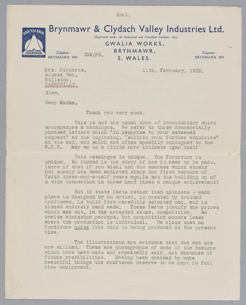 Llun inc o Gadair Eisteddfpd Genedlaethol Caerdydd, 1938, o waith crefftwyr Bryn-mawr.