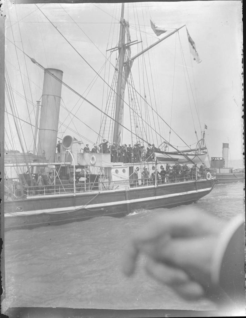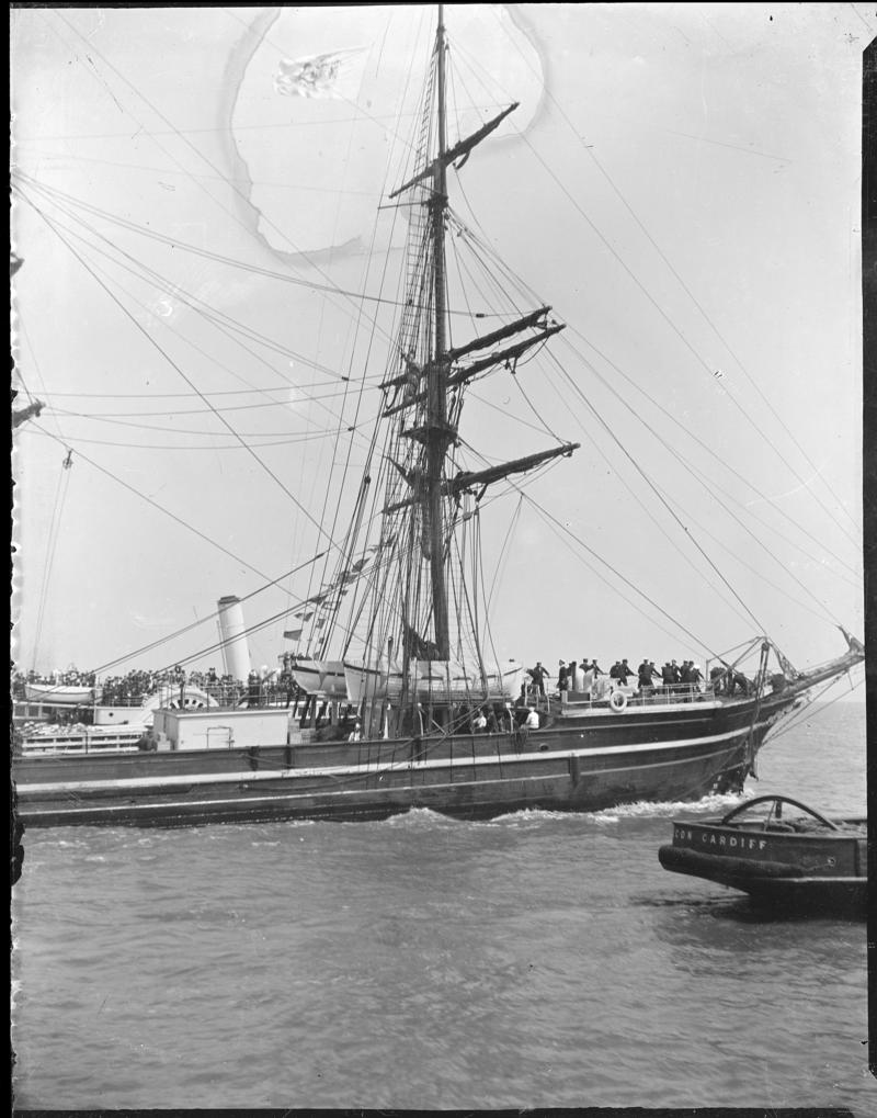 TERRA NOVA leaving Cardiff, 1910, glass negative