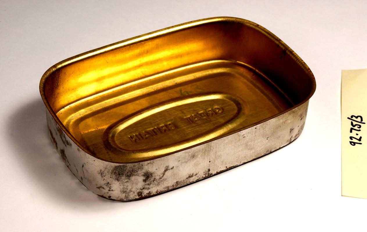 Part of a set of three tin sheets illustrating the making of a tin can.