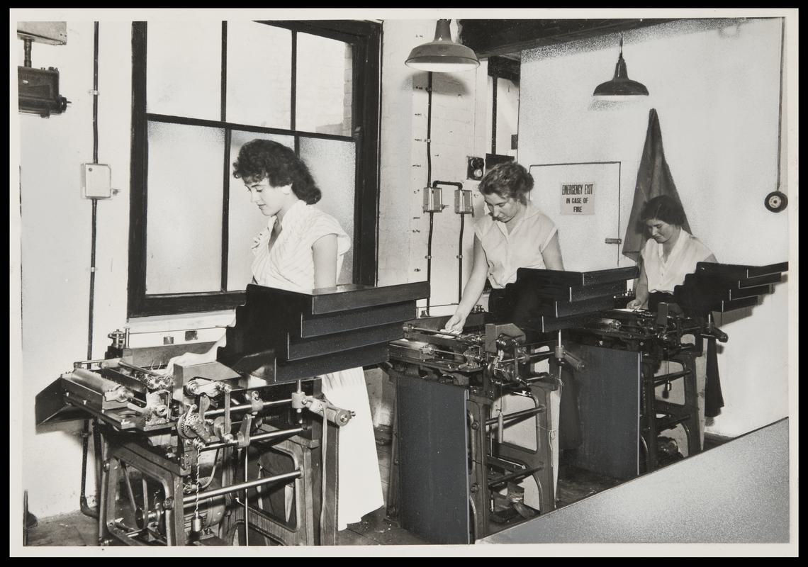Group photograph showing the staff of Smith's Potato Crisp Limited, Swansea, 1948. Mounted on card.