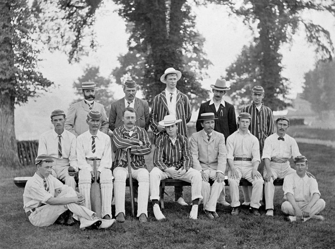 Mid Rhondda Cricket Club, 1st Xl, 1903. Mounted on card with photographer's details and names of club members.