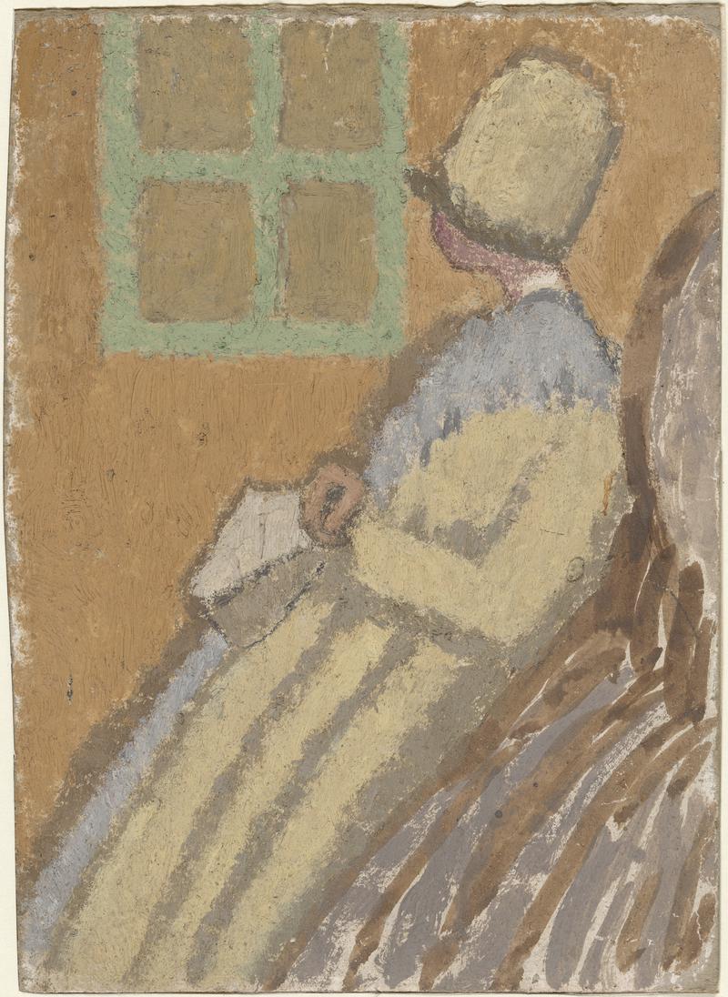 <p>Mae hwn ymhlith y gweithiau olaf y gwyddys amdanyn nhw gan Gwen John. Defnyddir yr effaith sych, sialcog a greodd yn ei phaentiadau olew yma hefyd. Bu Gwen John yn arbrofi gyda phigmentau i greu effeithiau tonyddol gwahanol ac yma mae wedi cyfuno paent olew gyda chorffliw, dyfrlliw didraidd. Mae’n un o gyfres o weithiau sy’n defnyddio’r un cyfansoddiad.</p>
