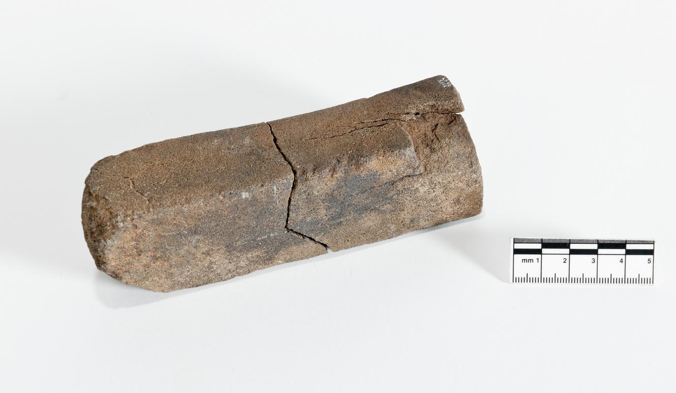 Whetstone of sandstone with the flat surface, smoothed and slightly dished.
