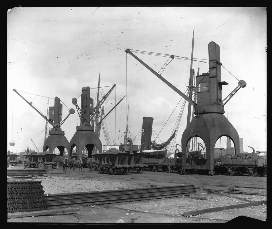 Copy negative of the marshalling yard adjoining Roath Dock, showing a sea of loaded private owner coal wagons.