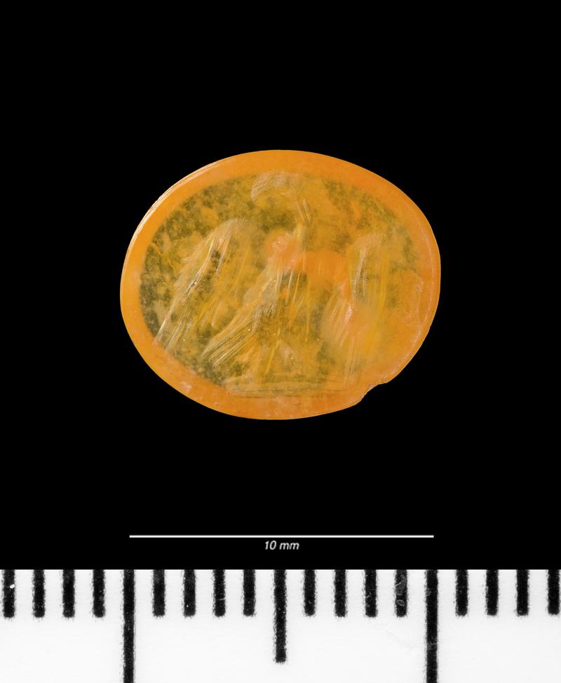 Blue paste imitating nicolo, bevelled from front. An eagle with head turned back, holding a wreath in its beak.