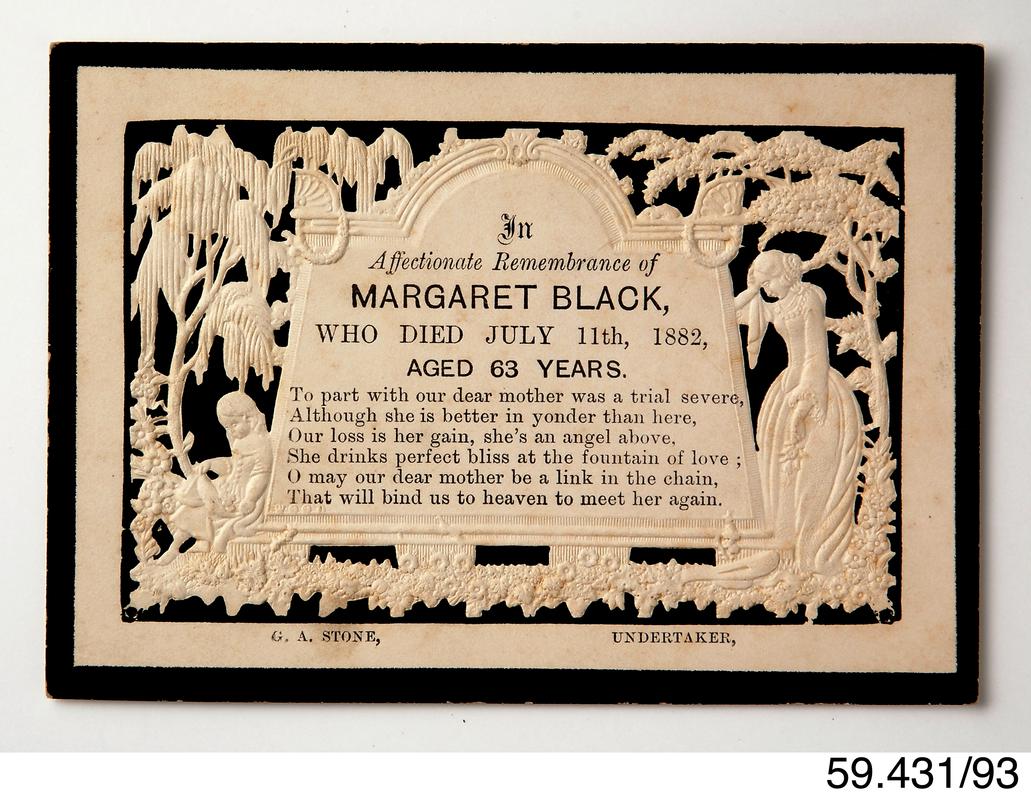 Memorial card for Margaret Smith of Penrheol, 1903.