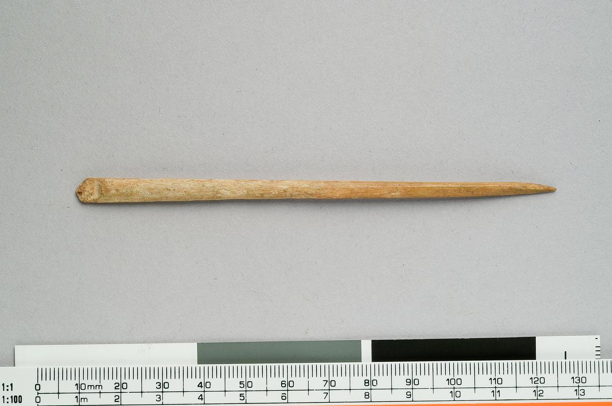 Pen pin asgwrn Ar ffurf penddelw o wraig.