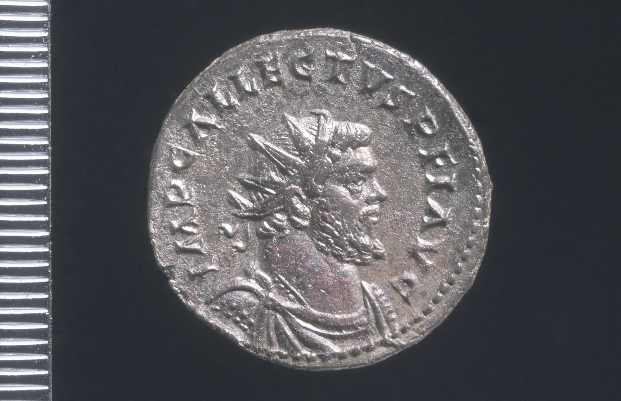 Nodiadau: This hoard of Roman coins was found in a bronze bowl during excavations for a septic tank. 2583 pieces were seized by the police on behalf of the coroner, but the silver content of the coins was too low for the hoard to be declared treasure trove.