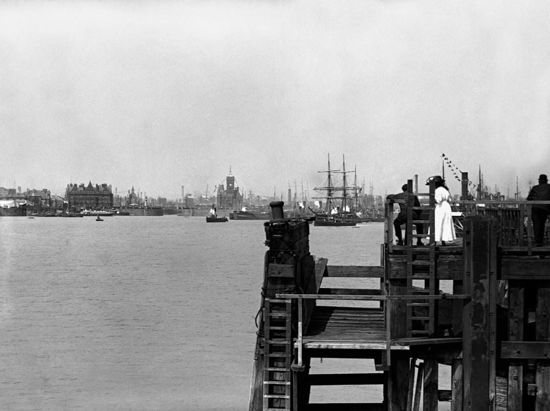 View of the TERRA NOVA leaving Cardiff Docks on 16 June 1910. Signed bottom right. Title painted at bottom left.