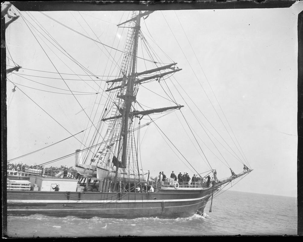 S.Y. TERRA NOVA. Auxiliary barque of 764 tons, was built by Messrs Alexander Stephens and Sons, Dundee in 1884 for the whaling trade. Although nearly thirty years old at the time of Captain Scott's expedition, she was chosen for it because of her suitability for work in the Antarctic ice. Her beams were fourteen ins thick, her bows were nine feet of solid wood, and her stem was sheathed with iron plating.