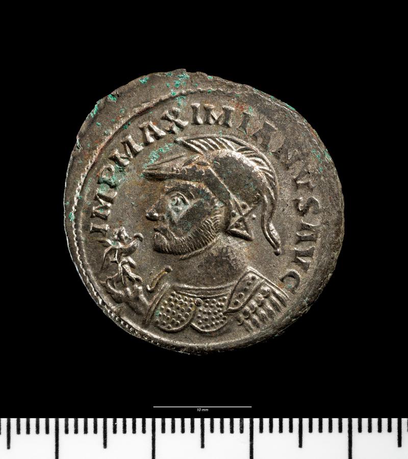 Nodiadau: In September 1957, Mr Leonard Borlase, a ploughman, reported the discovery of several Constantinian bronze coins in a field west of Pantycoed, Llanberthery, near Barry. Subsequent investigations with a mine detector revealed the mass of the hoard still in place, contained in the lower part of a grey pottery vessel. Although some coins ended up in private hands, the bulk of the hoard, some 811 coins, were recovered, and are now held by the NMGW.