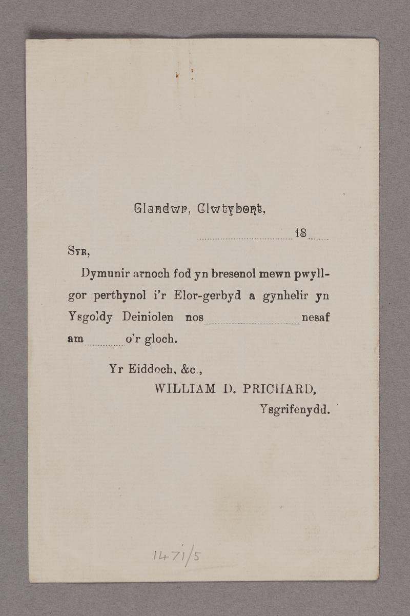 Llythyr a ddanfonwyd at Iorwerth Peate yn 1943 wrth y Parch. D.E. Gravell yn trafod ei wybodaeth am y draddodiad o berfformio y Fari Lwyd yn Sir Fynwy, ac yn son yn benodol am ardal Y Fenni a Llandegfedd.