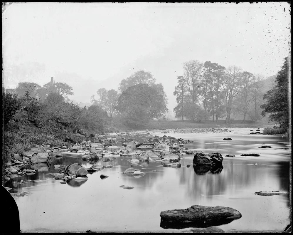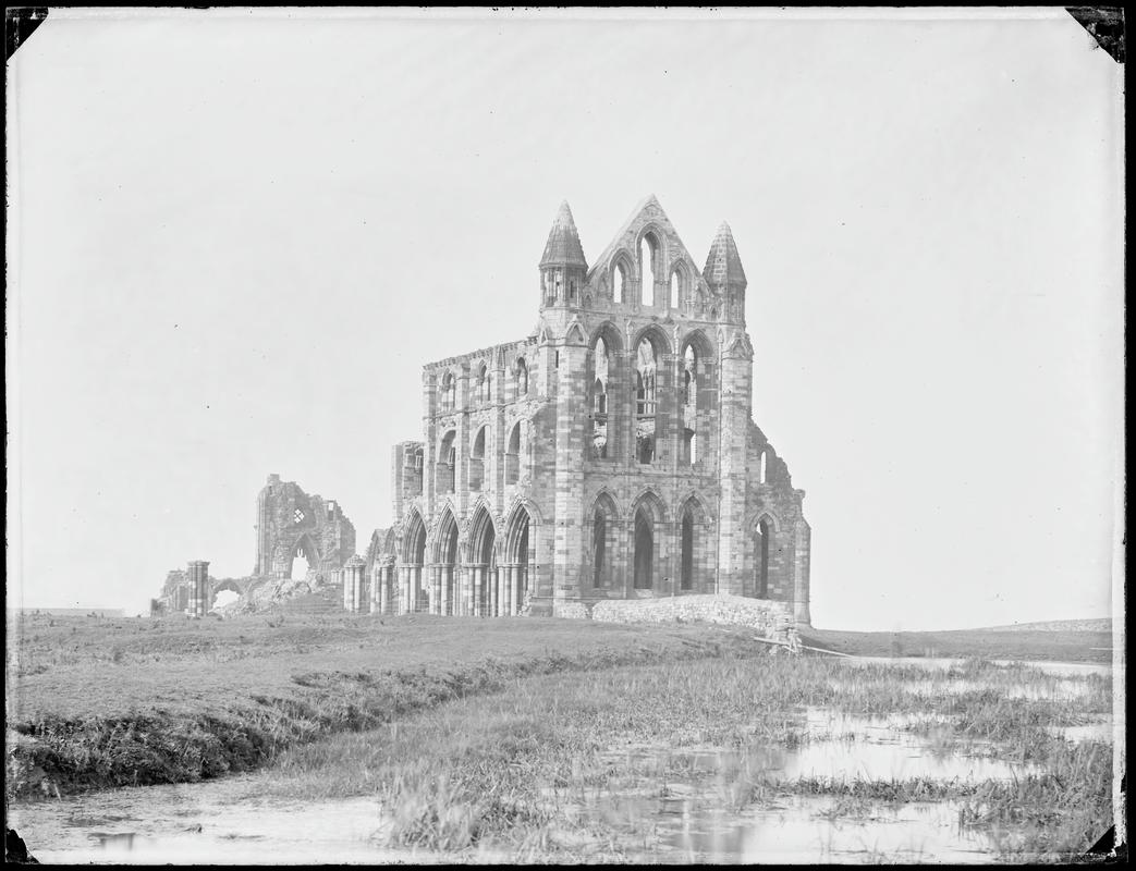 Collodion glass negative showing stone doorway at Bolton Abbey.