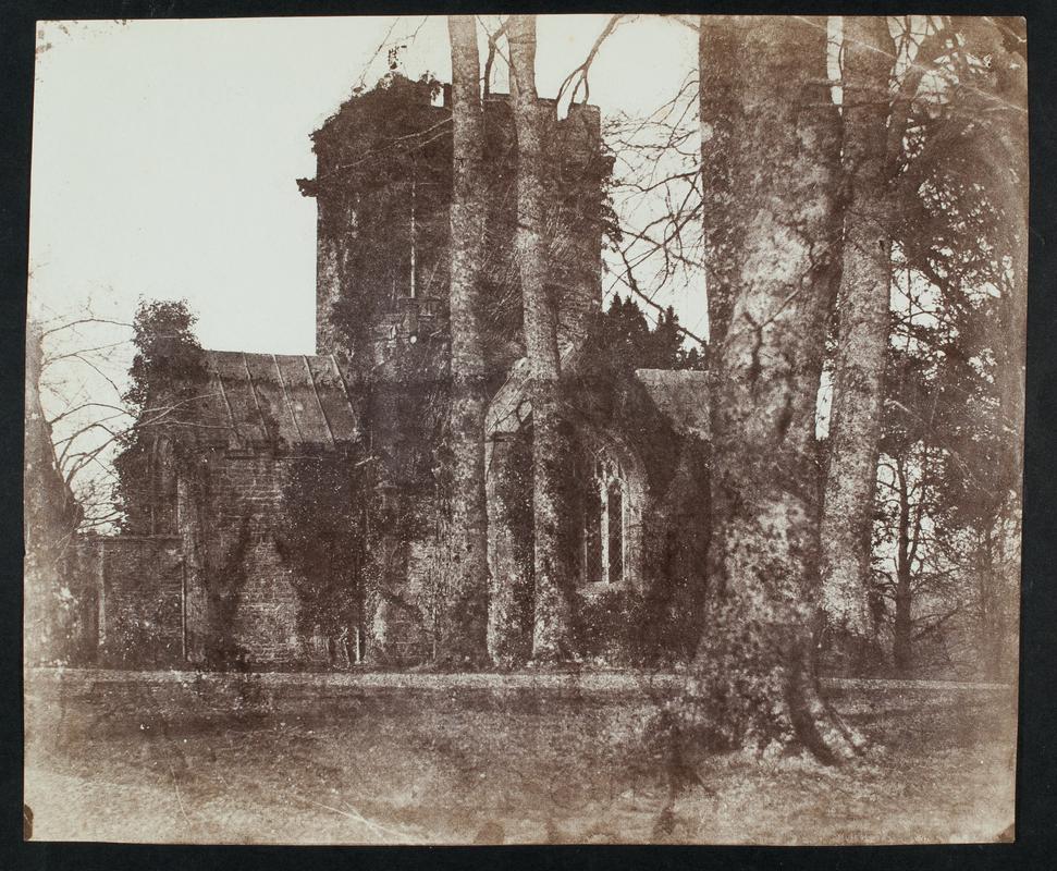 Salted paper print. Interior view of high vaulted church, showing part of nave, alter and Lady Chapel.
