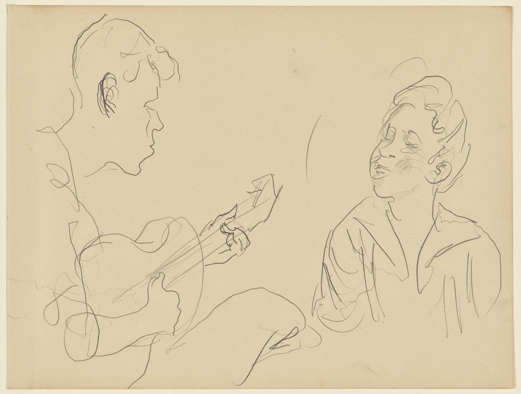 Darlun Gweithiau ar bapur Celf Gain 17_CADP_Aug_22 Astudiaeth ffurf Gitâr Ôl 1900 Cysylltiad Cymreig Cerddoriaeth Hunaniaeth pobl ddu African/Jamaican/W Indian Figures CADP content