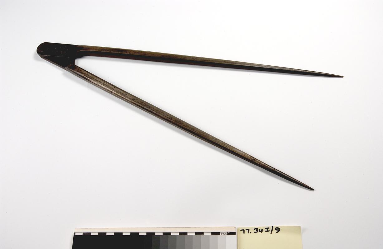 Pair of dividers, brass with steel points.