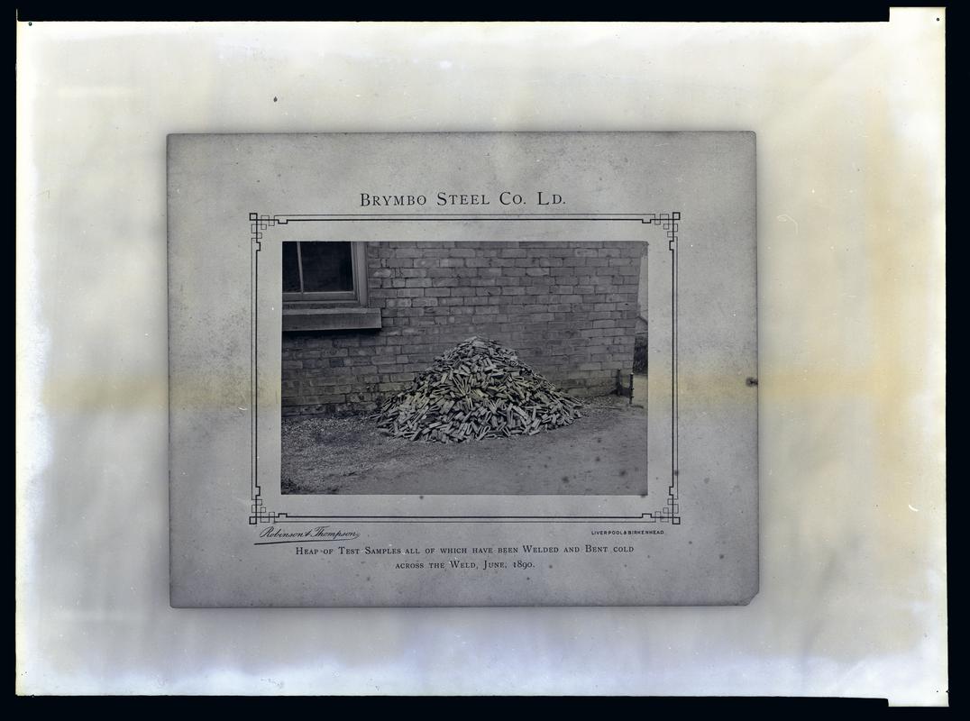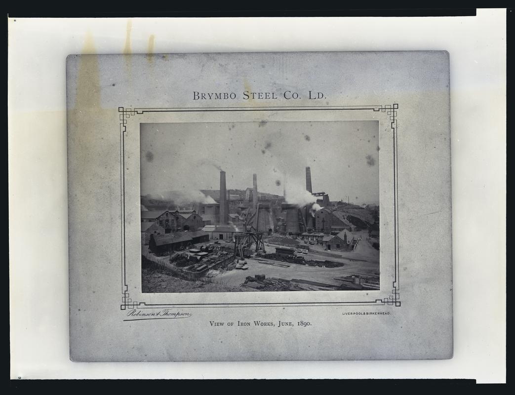 Copy negative of original photograph (2006.32/49) showing Brymbo steelworks, 11th October 1893. Part of "29 1950s copy negatives of late 19th and early 20th century photos of Brymbo Work and Hook Norton iron ore workings".