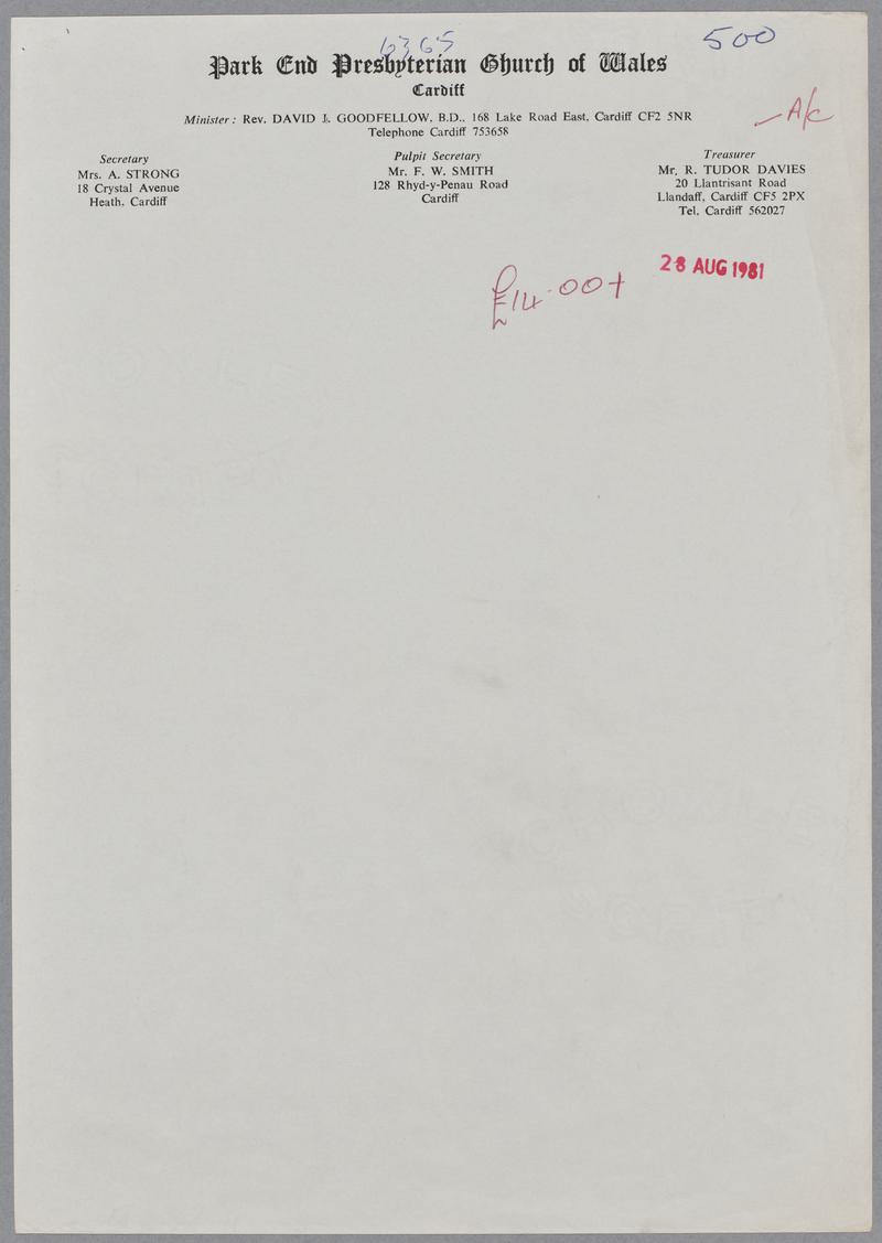 Letterhead 'J. McLaren Builder', Caerphilly. Handwritten order details on the front. Stamped with date 31 March 1980.