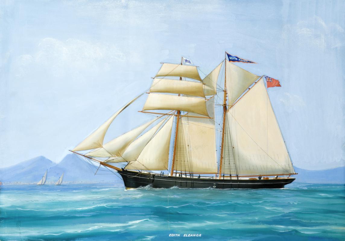 Portread o MAGWEN, cwch tri hwylbren, yng nghanol storm.