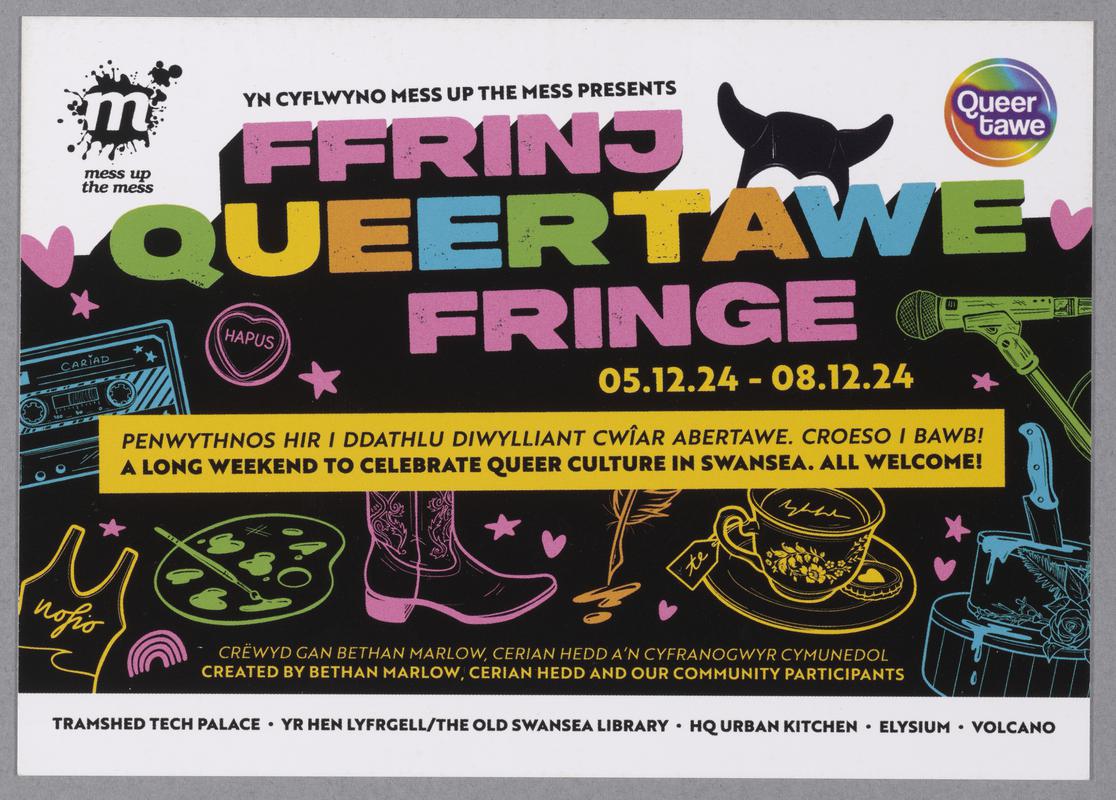 Bilingual (Welsh/English) flyer handed out by Viva LGBT, a group that provides "support for young people (14-25) who identify as lesbian, gay, bisexual or trans - and those questioning their sexual orientation or gender".