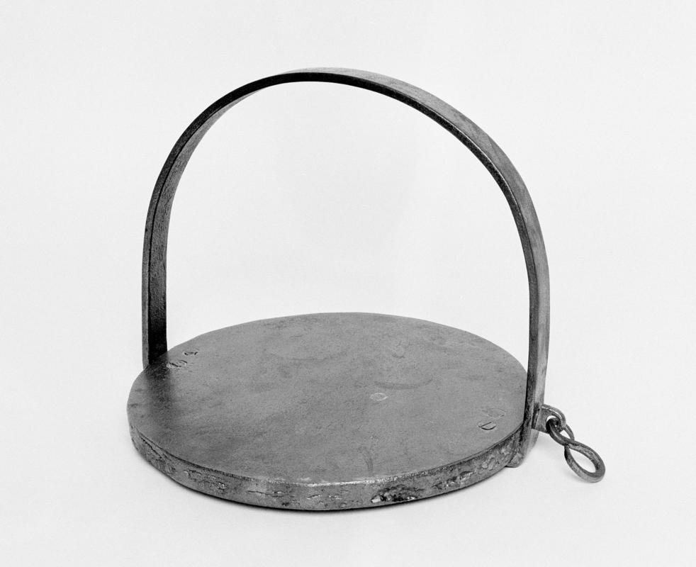 Cylindrical steamer, with graduated pierced base (to fit a variety of saucepans). Handle at either side. Flat lid with two ball handles.