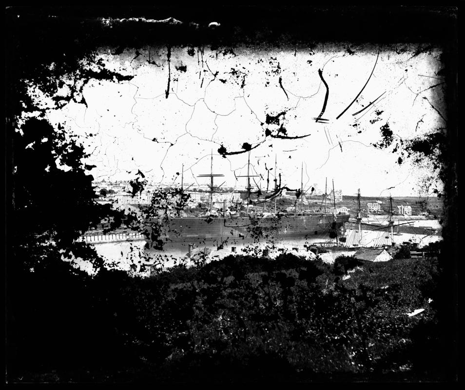 View shows the stern of the GREAT EASTERN at Milford Docks, 1870s.
