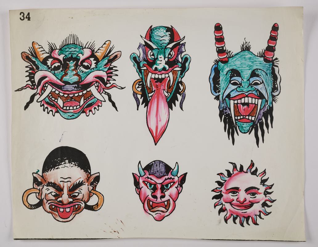 Tattoo flash. Black and white printed images, including various ‘U.S.M.C’ themes. ‘73’ on top left corner.