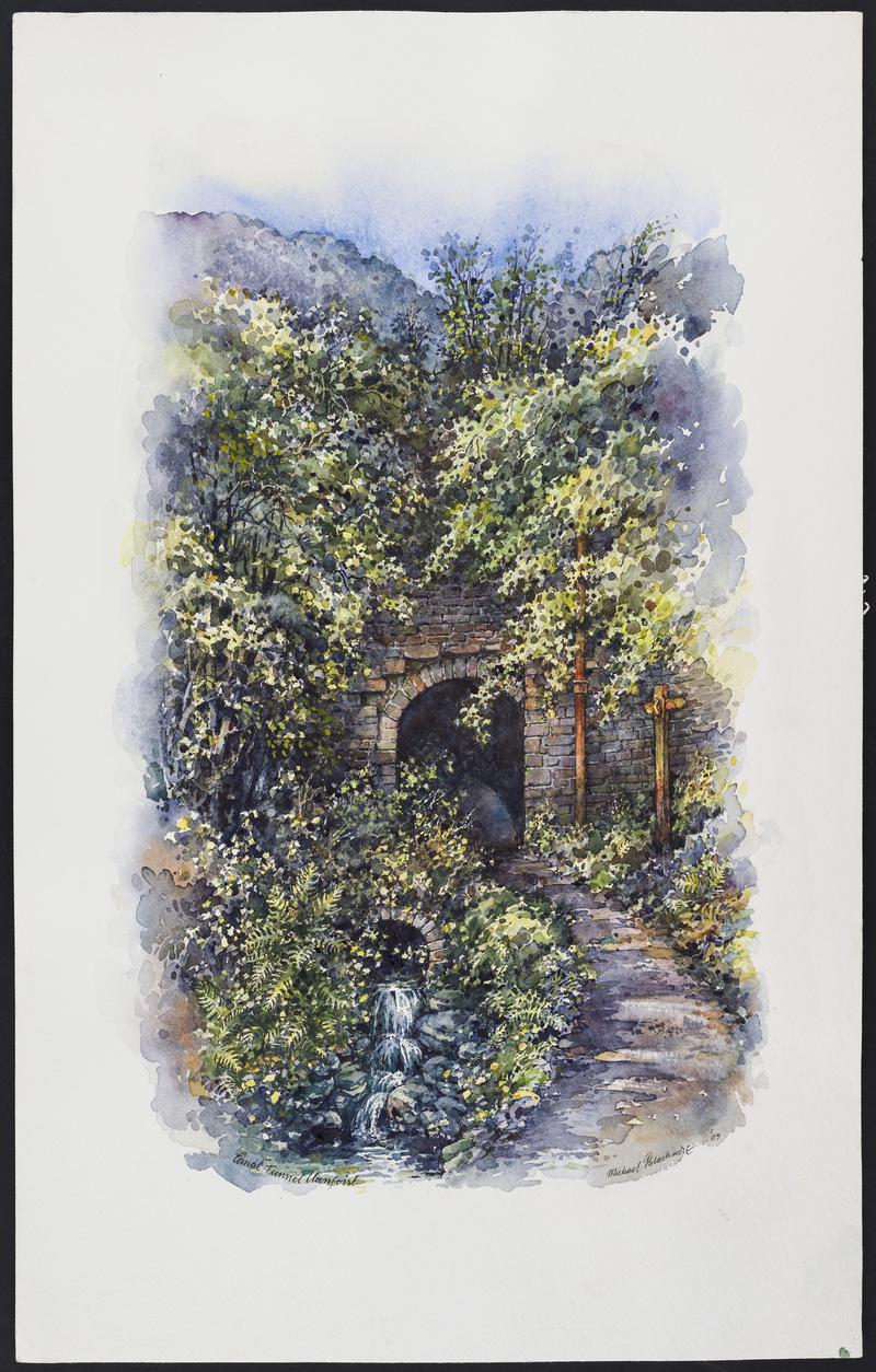 Painting taken from a photograph. Shows three miners with their names (William Thomas Williams, Harold Smallcombe and David Jones) painted below. Signed and dated bottom right. Framed.