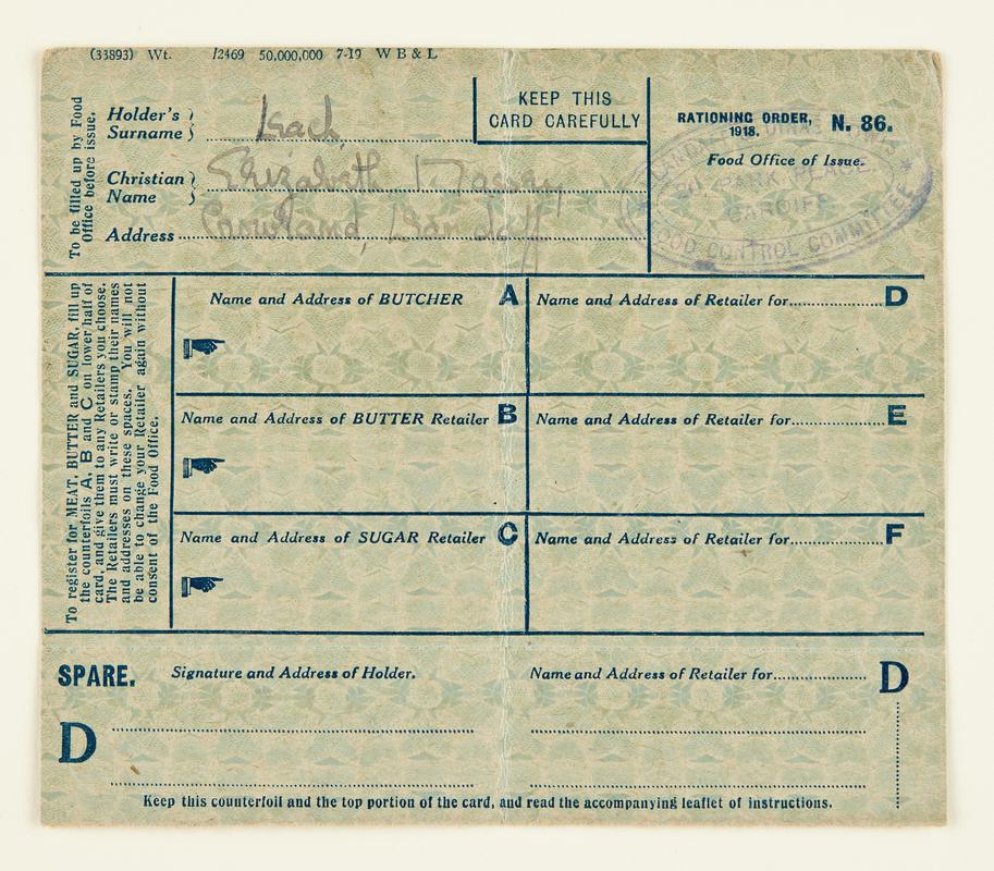 Bathodyn diwrnod fflagiau yn dangos milwr dall yn dal llaw plentyn. Gyda'r geiriau 'BLINDED FOR YOU'. Gwerthwyd er budd Dunstan's Hostel for Blinded Soldiers and Sailors, a sefydlwyd ym 1915.