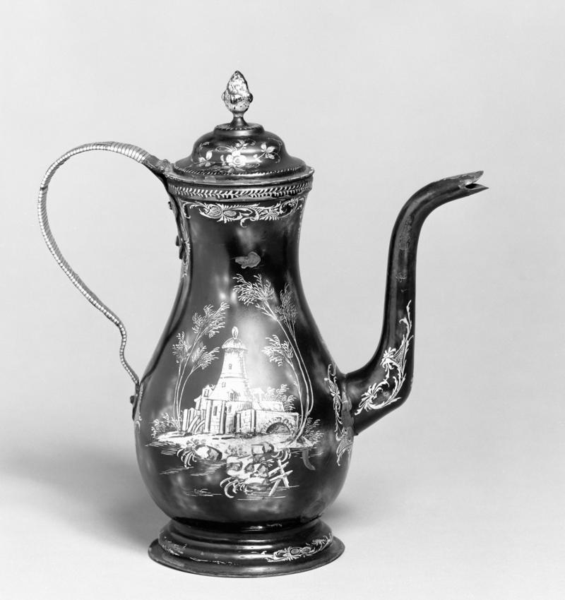 Yng nghanol yr hambwrdd hon mae darlun o’r Hen Blas yn Kelmarsh, wedi’i baentio mewn aur gydag arlliwiau brown a gwyrdd. Arysgrifiwyd arni’r geiriau 'The East View of the Old Hall at Kelmarsh in NORTHAMPTONSHIRE The seat of the late Thomas Hanbury Esq', sy’n awgrymu i’r hambwrdd gael ei chynhyrchu ar gyfer yr hynafiaethydd William Hanbury. Fe a ddymchwelodd yr Hen Blasty Jacobeaidd yn Kelmarsh a chyflogi John Gibbs i’w ailadeiladu rhwng 1728 a 1732 yn yr arddull Paladaidd ffasiynol. Seiliwyd yr olygfa ar engrafiad gan J. Mynde ar gyfer llyfr John Bridges History of Northamptonshire. Cyhoeddwyd y llyfr ym 1791 ond ym 1724 y cynhyrchwyd yr engrafiad gwreiddiol. Canfuwyd bod hambwrdd Amgueddfa Cymru yn un o set o dair yn dangos yr adeilad o onglau gwahanol, ac mae’r ddau arall yn dal i’w gweld ym Mhlas Kelmarsh.