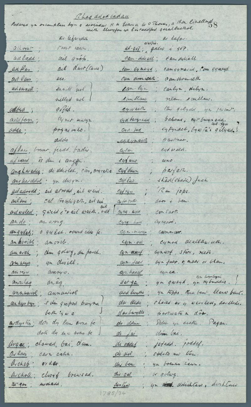 Llun-gopiau o gasgliadau o'r enwau ar greaduriaid gwyllt - adar, anifeiliaid, pysgod a thrychfilod a glywir ar lafar gwlad yng Nghymru gan : Mrs Catherine Ann Humphreys (Llangadfan), Mrs Elizabeth Reynolds (Brynhoffnant) a Mrs. Mary Thomas (Morfa Nefyn).