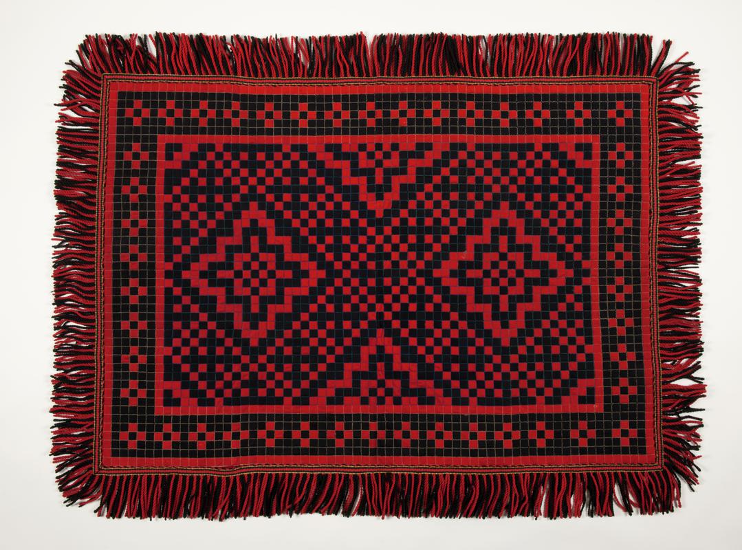 Plain cream woollen blanket with cream blanket stitch across top and bottom widths. Stencilled on surface in black ink are: 'G R' [George Regina with crown between G and R] 'M & S' [could this stand for Military and Service?] and date '1940'. In one corner of blanket a printed cotton label has been stapled with following: 'NATIONAL PRICE CONTROLLED BLANKET / SIZE 66" X 84" WEIGHT 4LBS/ Selling Price to Public including Purchase Tax / 39/6 / This label must not be removed before purchase by the public. Vide Section 1 (3) of the goods and services (Price Control) Act, 1941'.