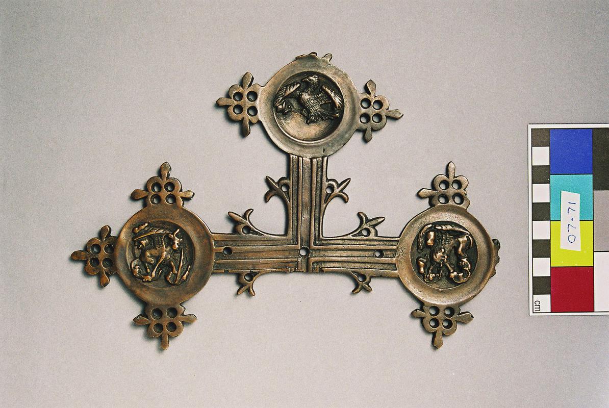Fe'i gwneud y groes mewn darnau cyn eu rhoi at ei gilydd. Castiwyd Iesu Grist a'r ffigyrau eraill yn gyntaf, cyn eu rhybedu yn eu lle. 1400s.